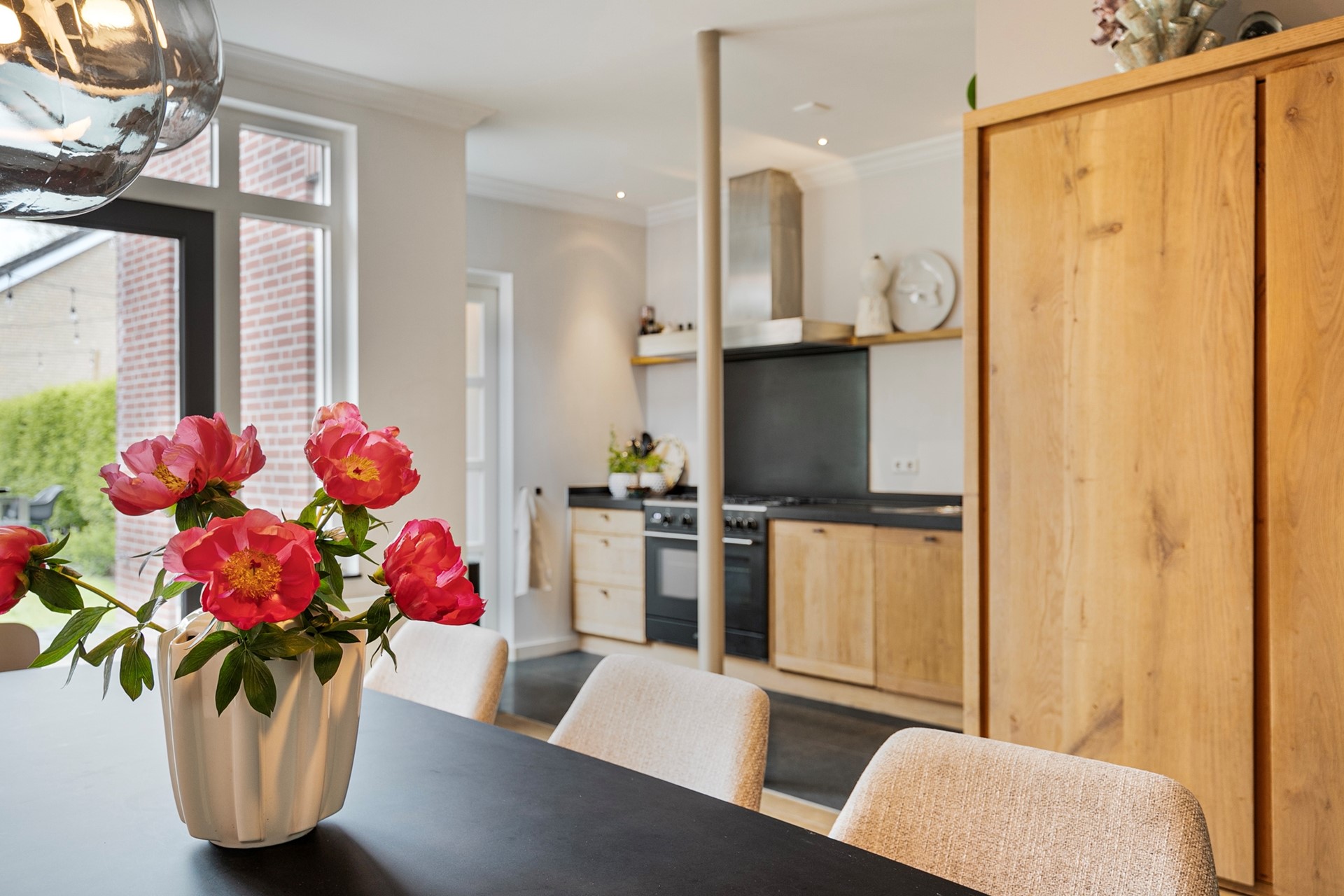 De open keuken is voorzien van een prachtig hardstenen blad en een 5 pits SMEG gasfornuis met oven (2024) en afzuigkap. Alle moderne gemakken zijn aanwezig, waaronder een koelkast, vaatwasser en magnetron. De keuken is samengesteld met massief houten kastjes, die niet alleen zorgen voor voldoende opbergruimte, maar ook bijdragen aan de sfeer van de keuken.