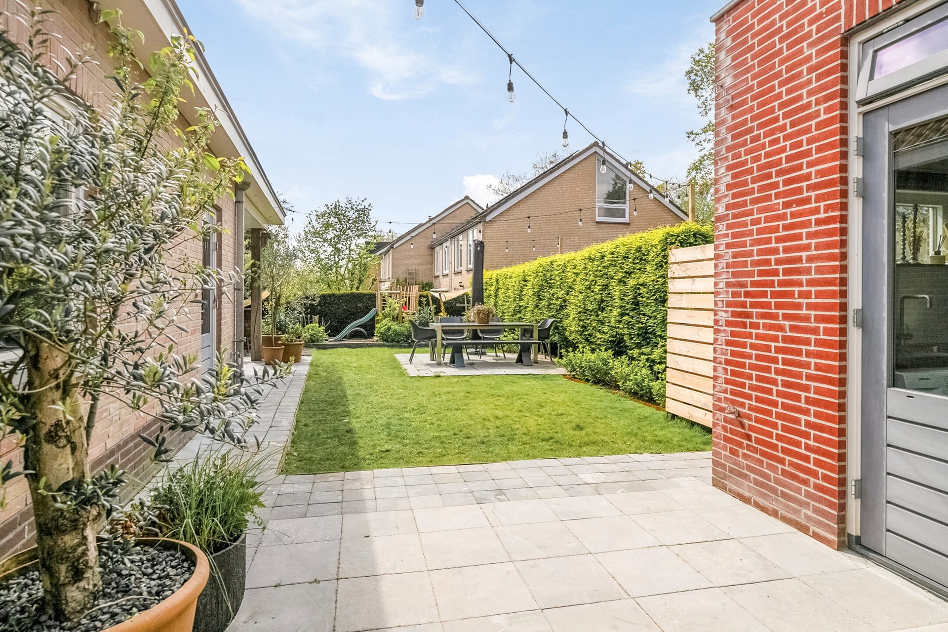 De tuin, gesitueerd op het zuidwesten, is een heerlijke plek en biedt alles wat je maar kunt wensen. Prachtig aangelegd met sierbestrating, een gazon en groene borders, is dit de ideale plek om te ontspannen en tot rust te komen. Voor kinderen is er achterin de tuin een speelgedeelte waar ze zich kunnen uitleven en plezier kunnen maken.