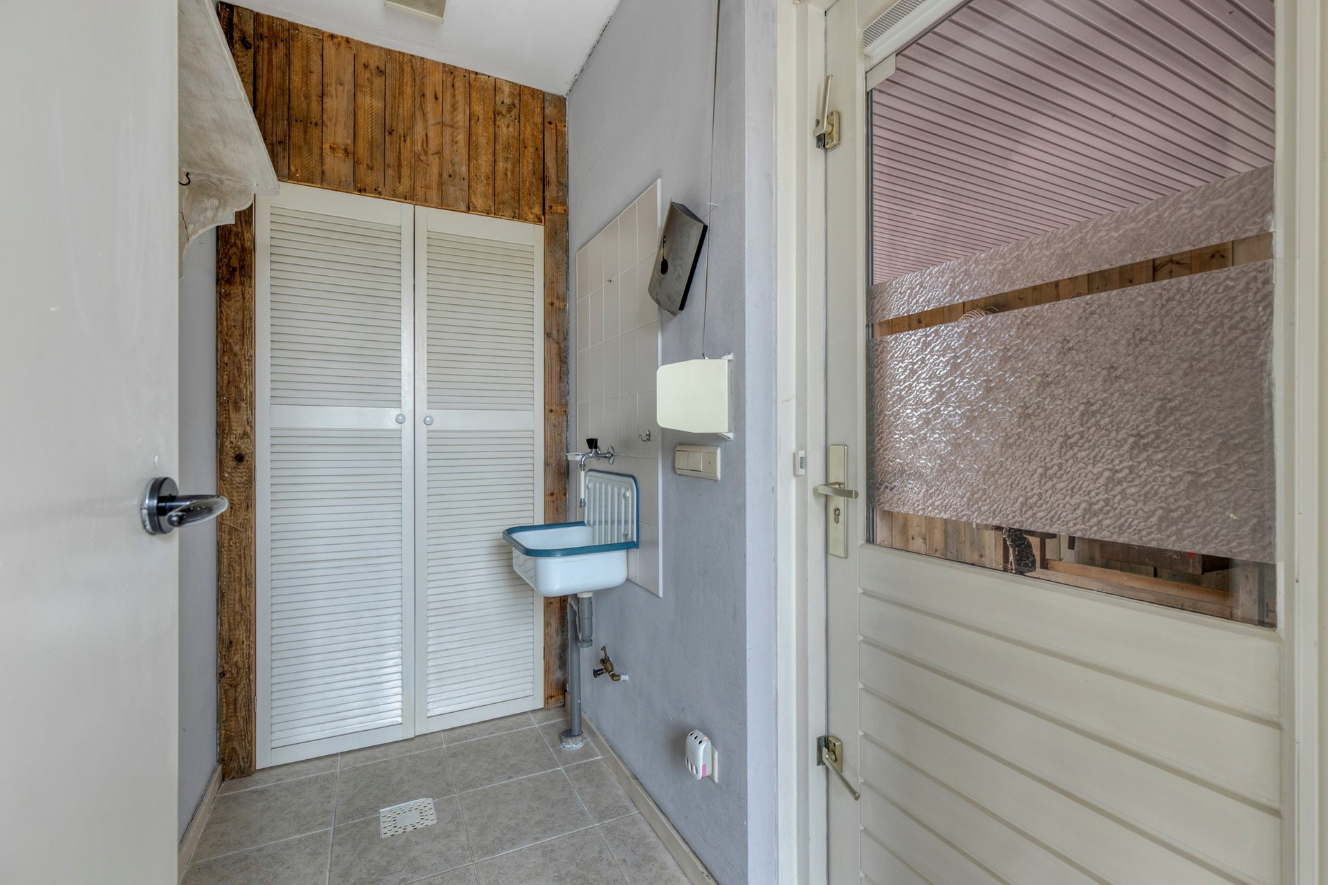 Aansluitend vind je de bijkeuken: een praktische ruimte met uitstortgootsteen en een deur naar de carport – ideaal voor extra opslag, de was of natte jassen na een regenbui.