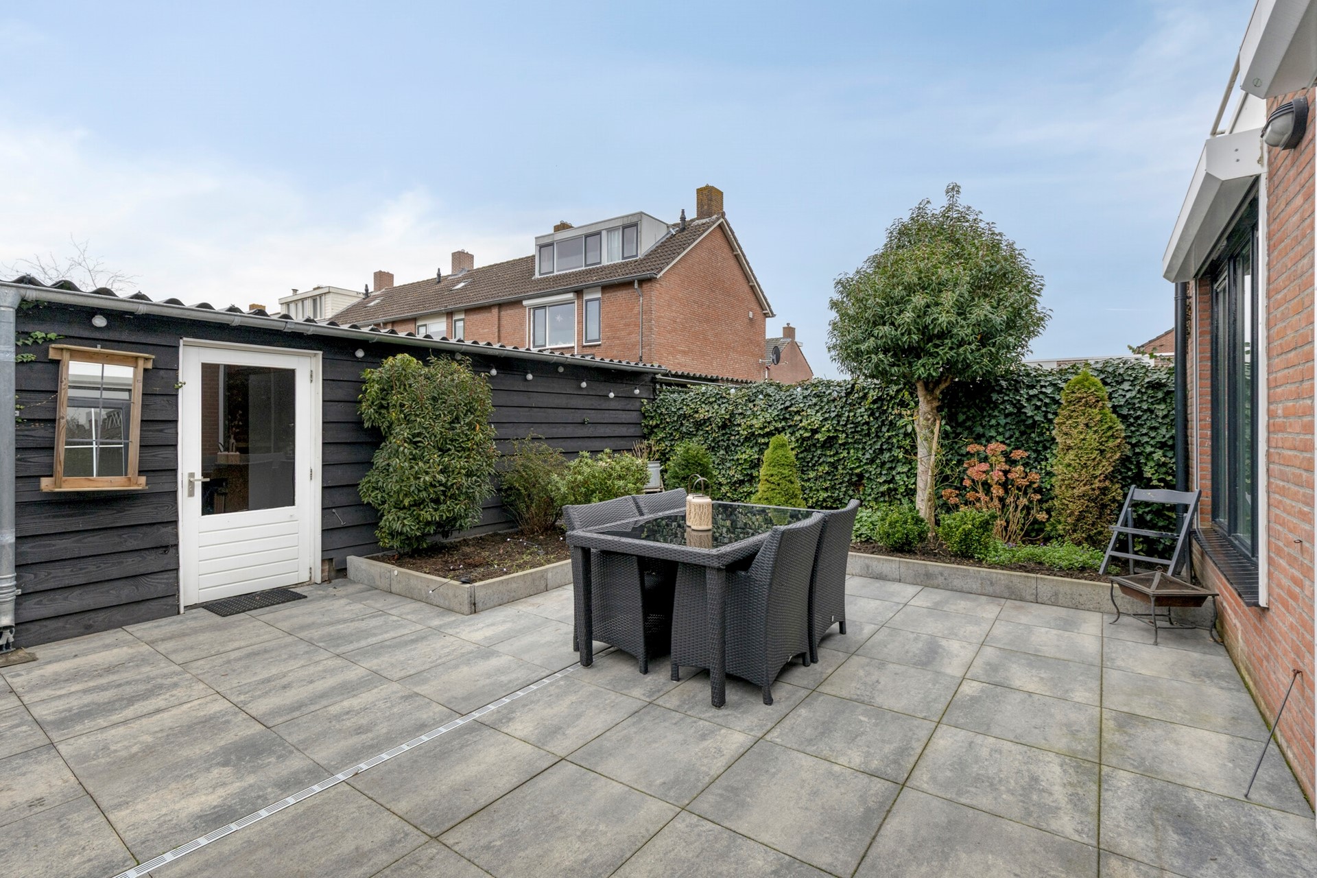 Het huis heeft een leuke, brede tuin, netjes aangelegd met sierbestrating en meerdere terrassen. Een heerlijke plek voor lange zomeravonden, borrels met vrienden of gewoon relaxed buiten zitten na een drukke dag.