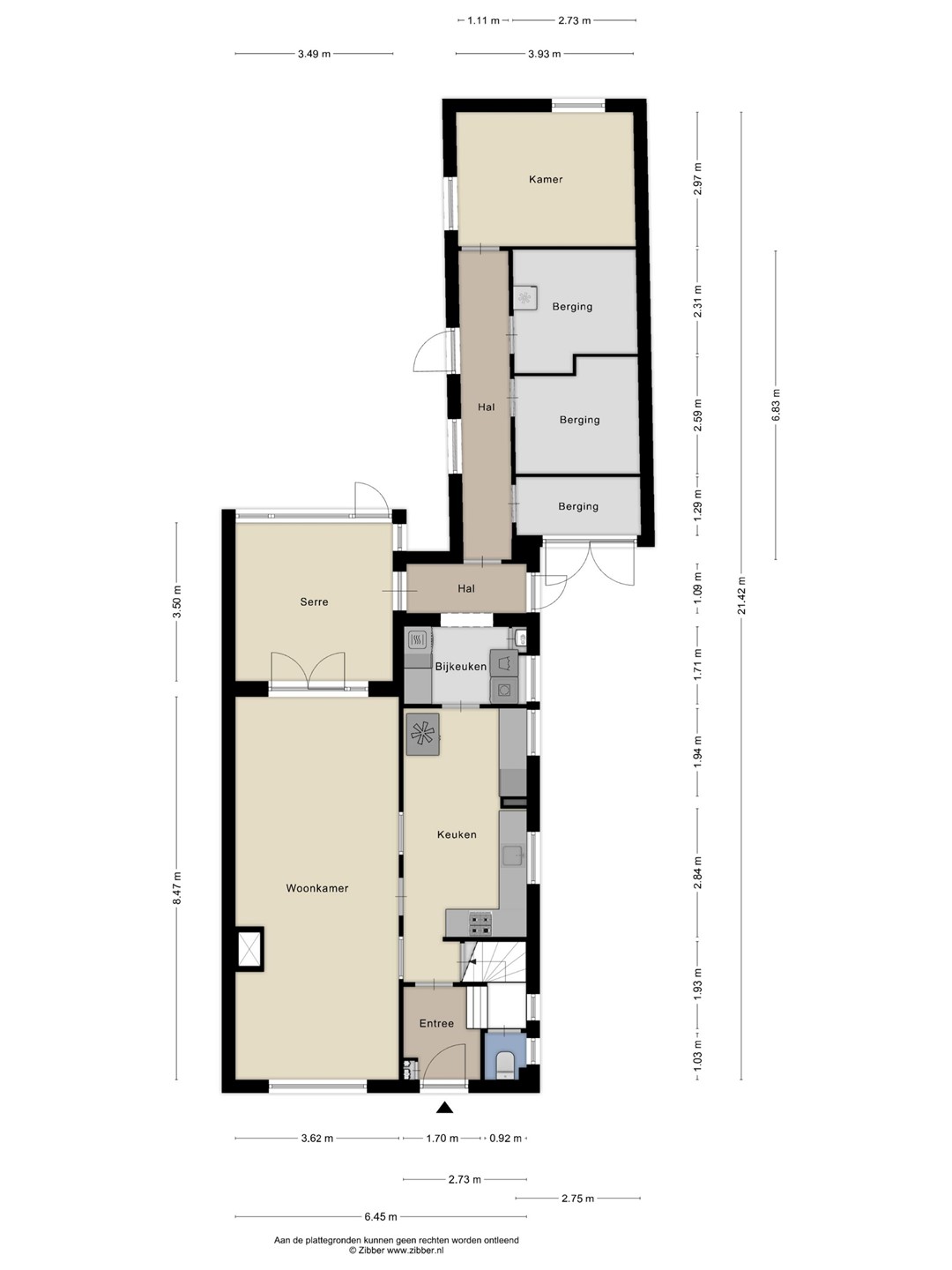 Vanuit de serre is er toegang tot een 2e hal, die de bijkeuken verbindt met de aanbouw. Deze is nu grotendeels in gebruik als berging, maar zoals eerder beschreven kan je hier heel veel kanten mee op!