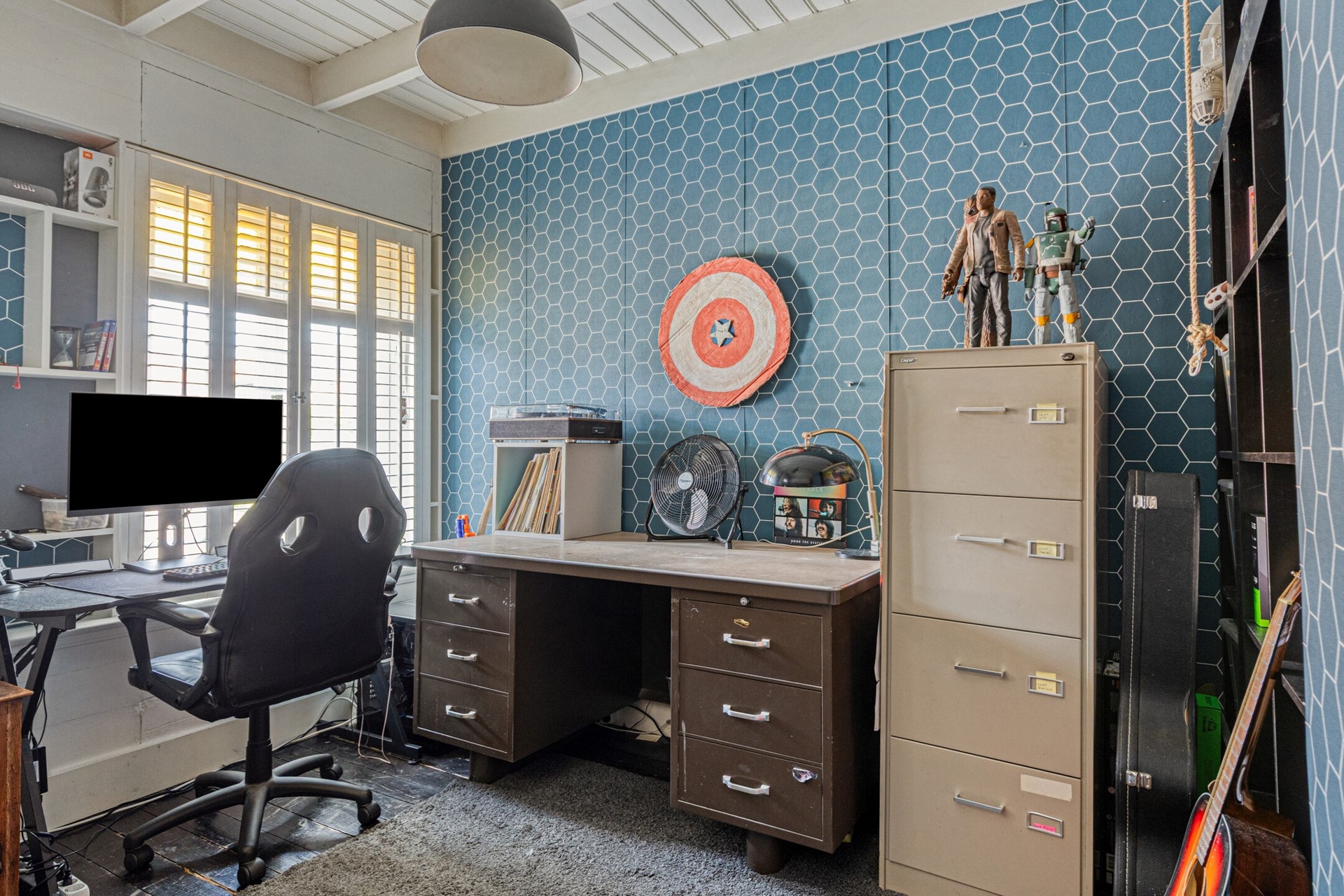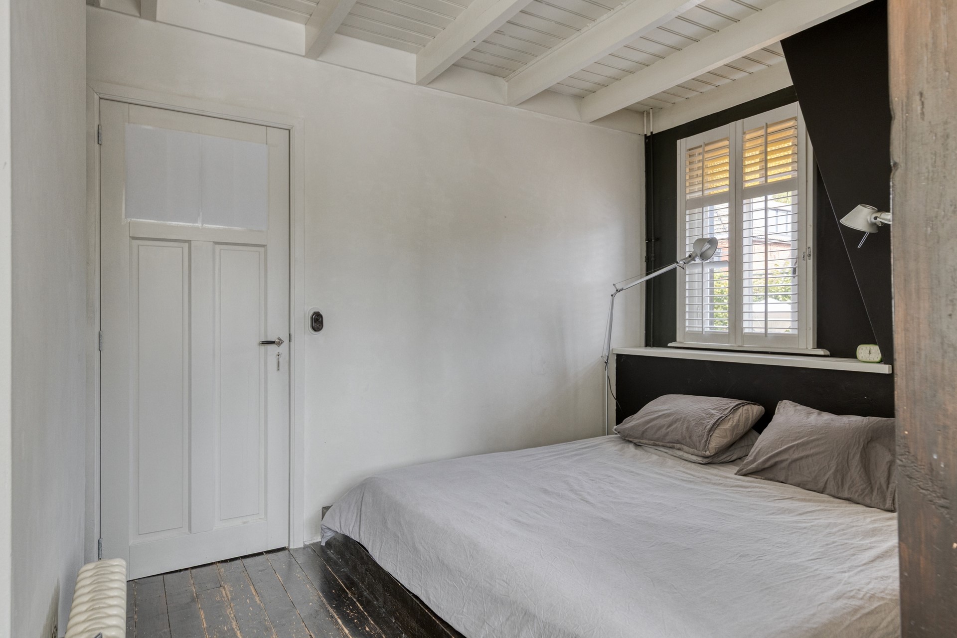 Aan de voorkant van het huis is een volwaardige slaapkamer, ideaal als logeerkamer, tienerkamer of extra werkkamer.