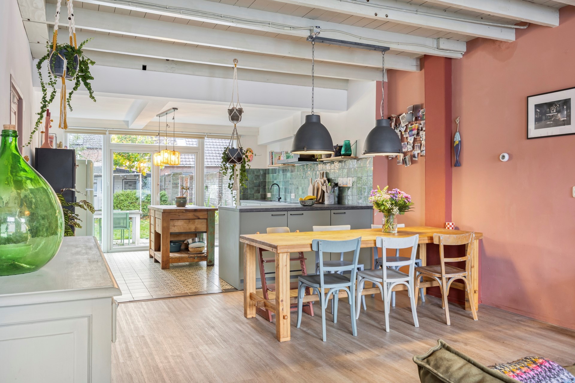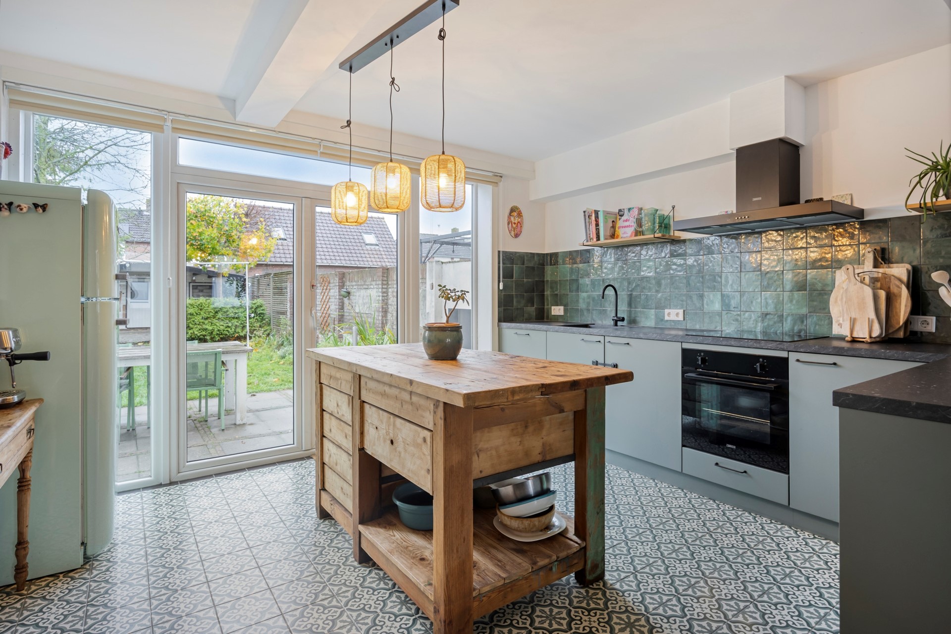 Door de open keuken, ben je tijdens het koken altijd dicht bij de rest van het gezin of je gasten. De keuken is vernieuwd in 2022 en dus nog maar een paar jaar oud. Door de hoekopstelling vind je er veel werk- en bergruimte. Qua apparatuur is er een oven, een vaatwasser, een inductie kookplaat en een afzuigkap. Dus ook al ben je (nog) geen keukenprins of -prinses, je zult hier vast geïnspireerd worden om wat lekkers op tafel te zetten. Het eiland in het midden van de keuken gaat in principe mee met de huidige eigenaren. Maar mocht je er helemaal verliefd op zijn, dan is overname ook bespreekbaar.