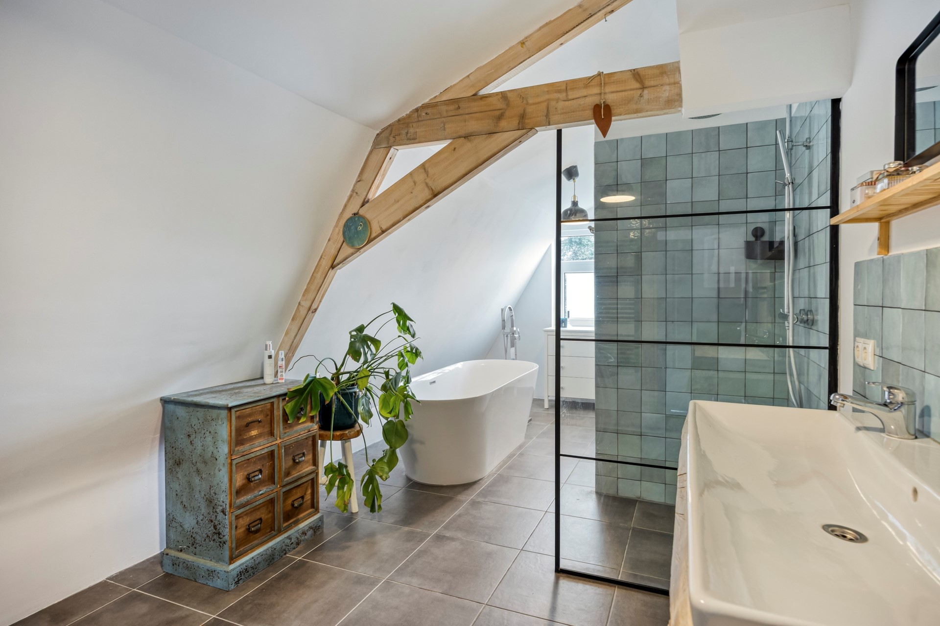Qua ruimtes beginnen we op deze verdieping graag bij de badkamer. Want wat een pareltje is dit! De badkamer is nog maar 2,5 jaar oud en heeft een vrijstaand design ligbad, een inloopdouche, een toilet, een dubbel wastafelmeubel en een design radiator. Een heerlijke ruimte om te badderen en ontspannen.