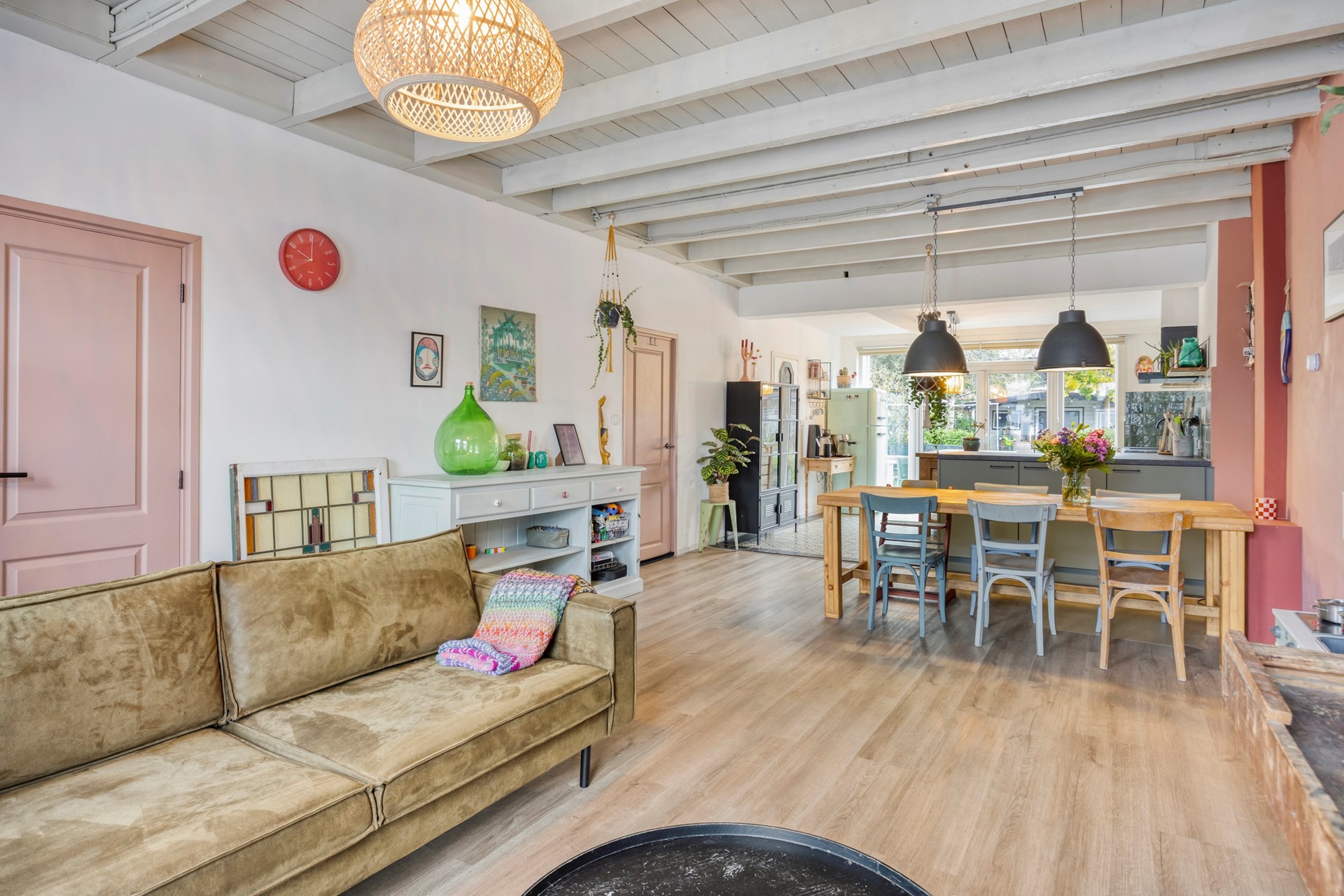 In de woonkamer adem je meteen de heerlijk sfeer van het huis. Door het mooie hoge balkenplafond ervaar je de leeftijd van het huis en door de fijne vloerverwarming (2022) ervaar je het comfort van de modernisering. Er is voldoende ruimte voor een heerlijke zithoek en een grote eettafel. De trapkast biedt veel opbergruimte voor voorraad, speelgoed en/of schoonmaakspullen.