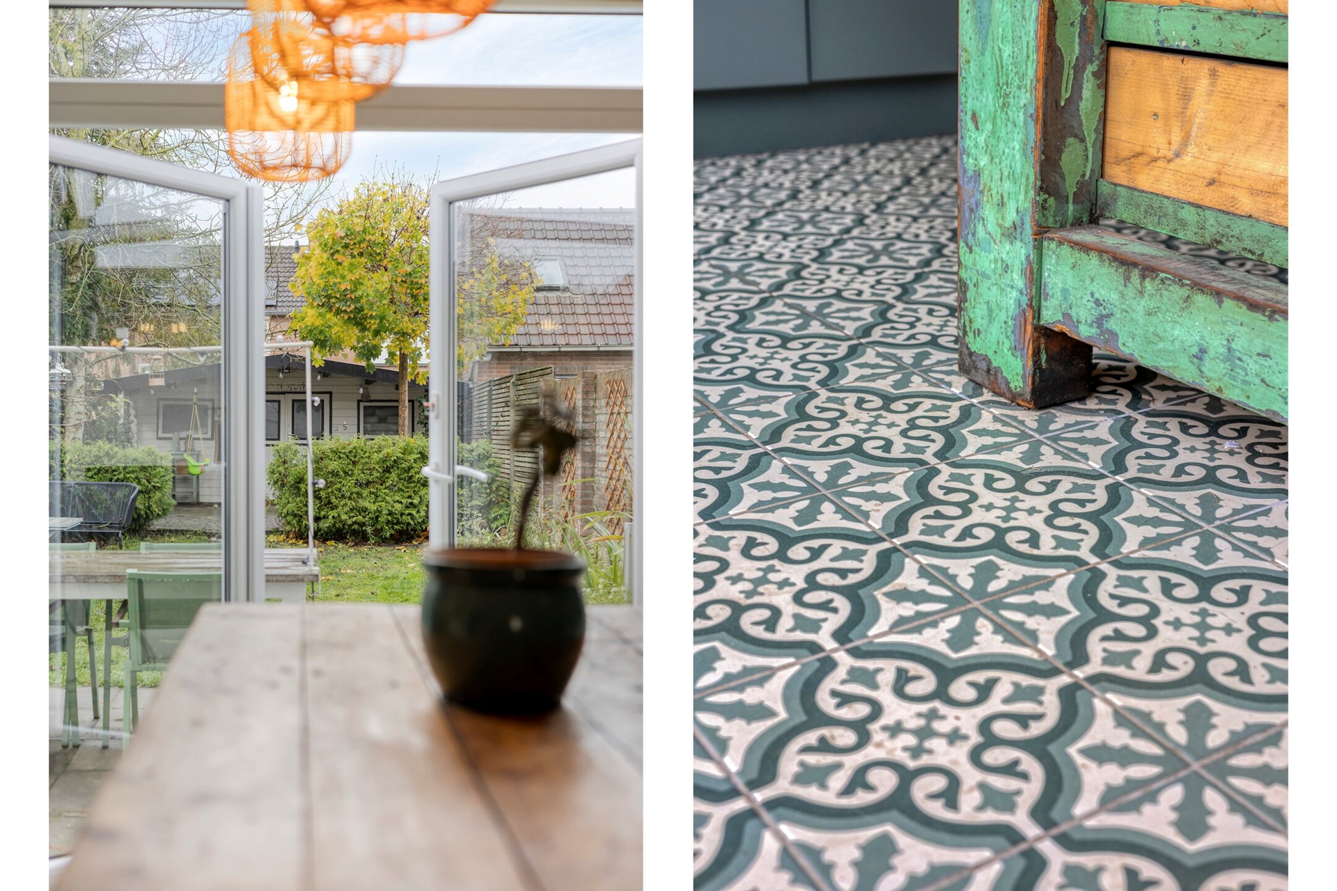 Vanuit de keuken is er toegang tot de tuin via dubbele tuindeuren Bij lekker weer eet je dus net zo makkelijk buiten als binnen.