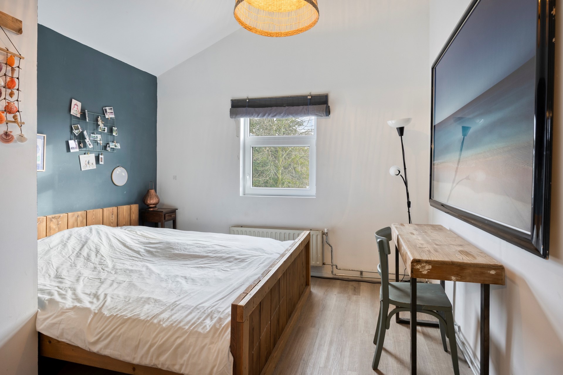 We vervolgen onze weg naar de grootste slaapkamer aan de achterzijde van het huis. Met bijna 20 m² is er voldoende ruimte voor kleding, een heerlijk bed en eventueel een werkplek.