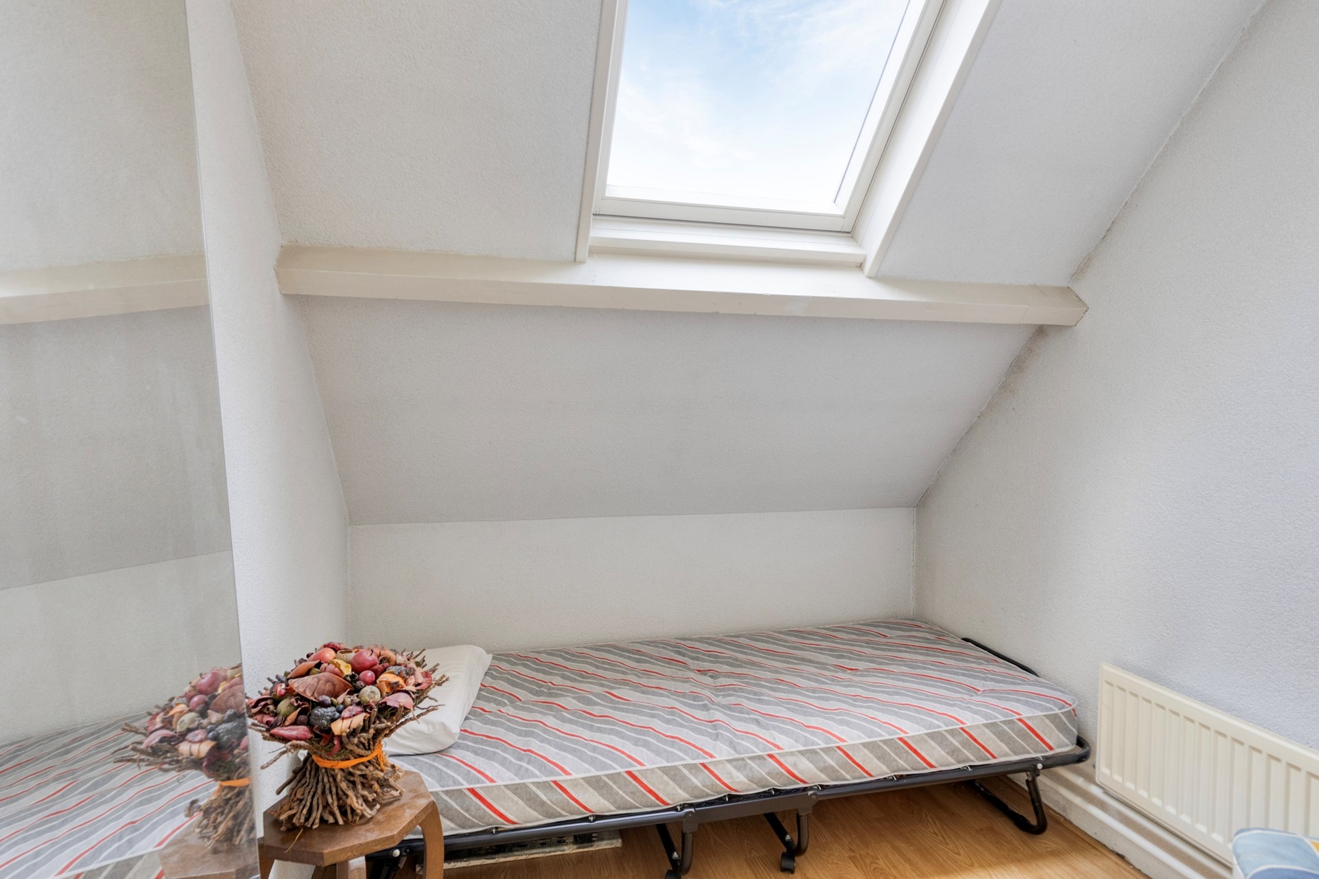 Via een vaste trap bereik je de tweede verdieping, een volwaardige en verrassend ruime zolderverdieping. De open ruimte biedt veel mogelijkheden en is naar wens in te delen.
