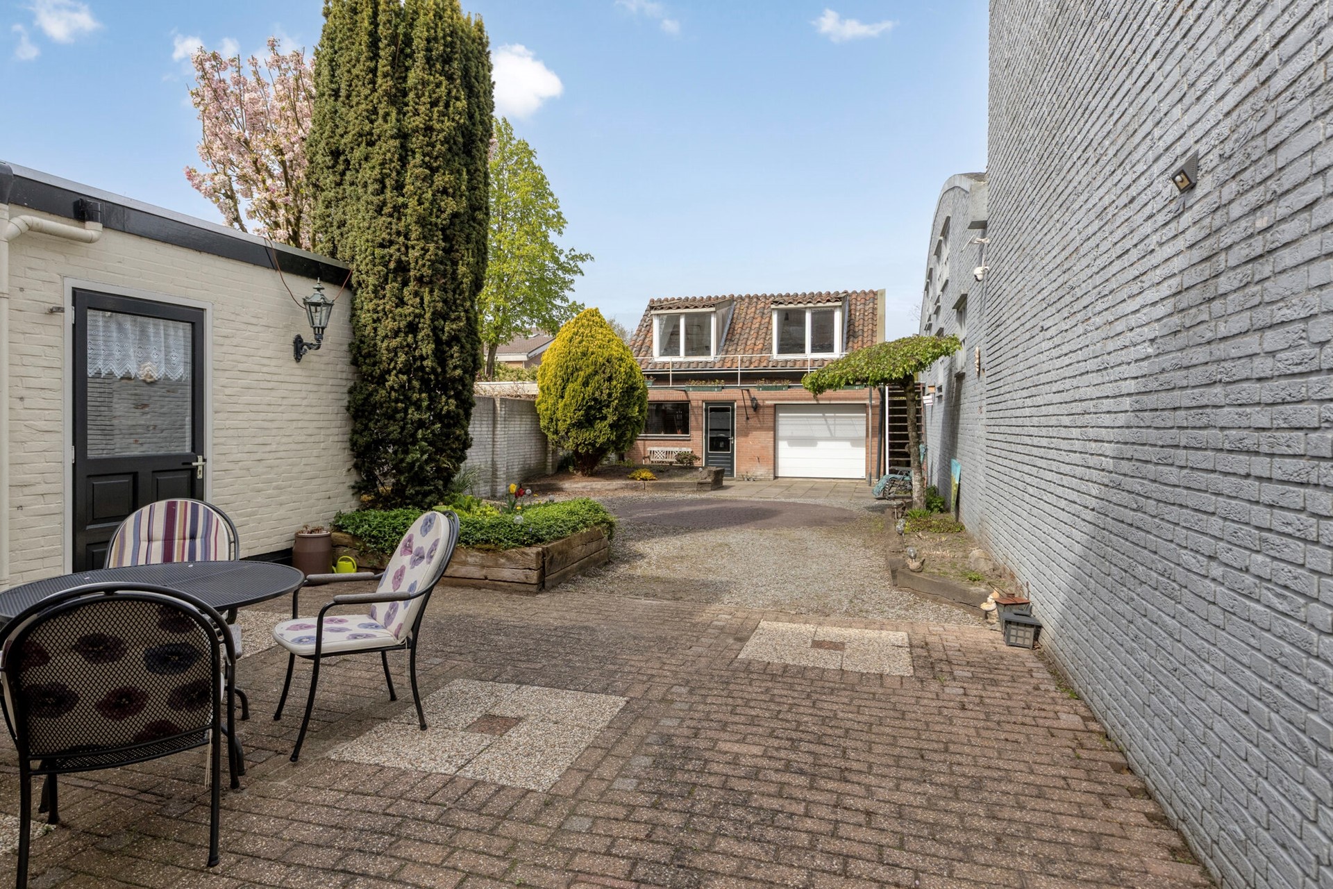 Naast de woning is een eigen oprit met een doorgang van circa 2 meter breed, waardoor je met een (kleine) auto de garage kunt bereiken. Een groot pluspunt dat zorgt voor extra gemak.