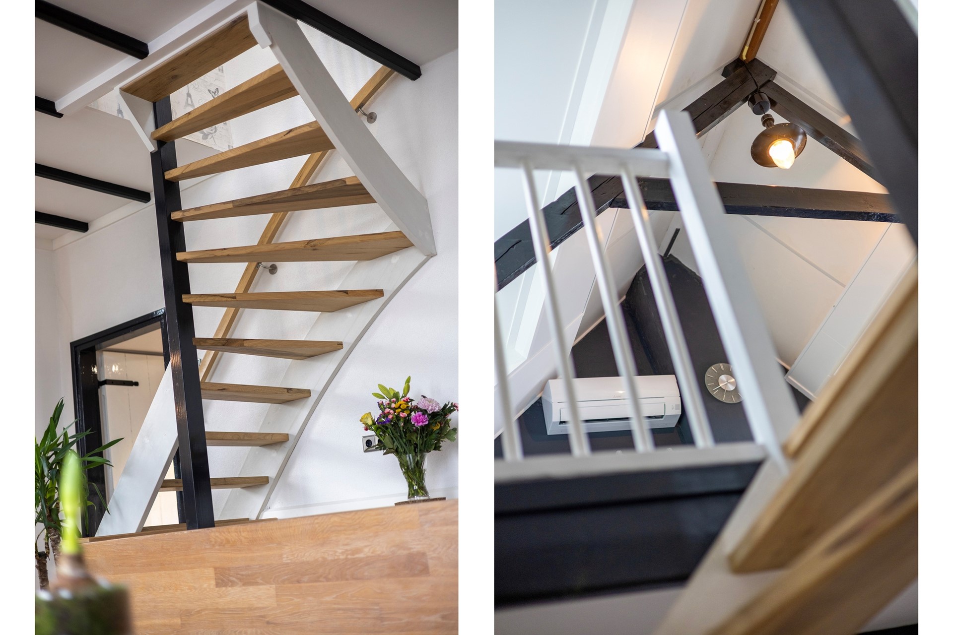 De eerste verdieping van het huis is te bereiken via een vaste trap in de woonkamer.